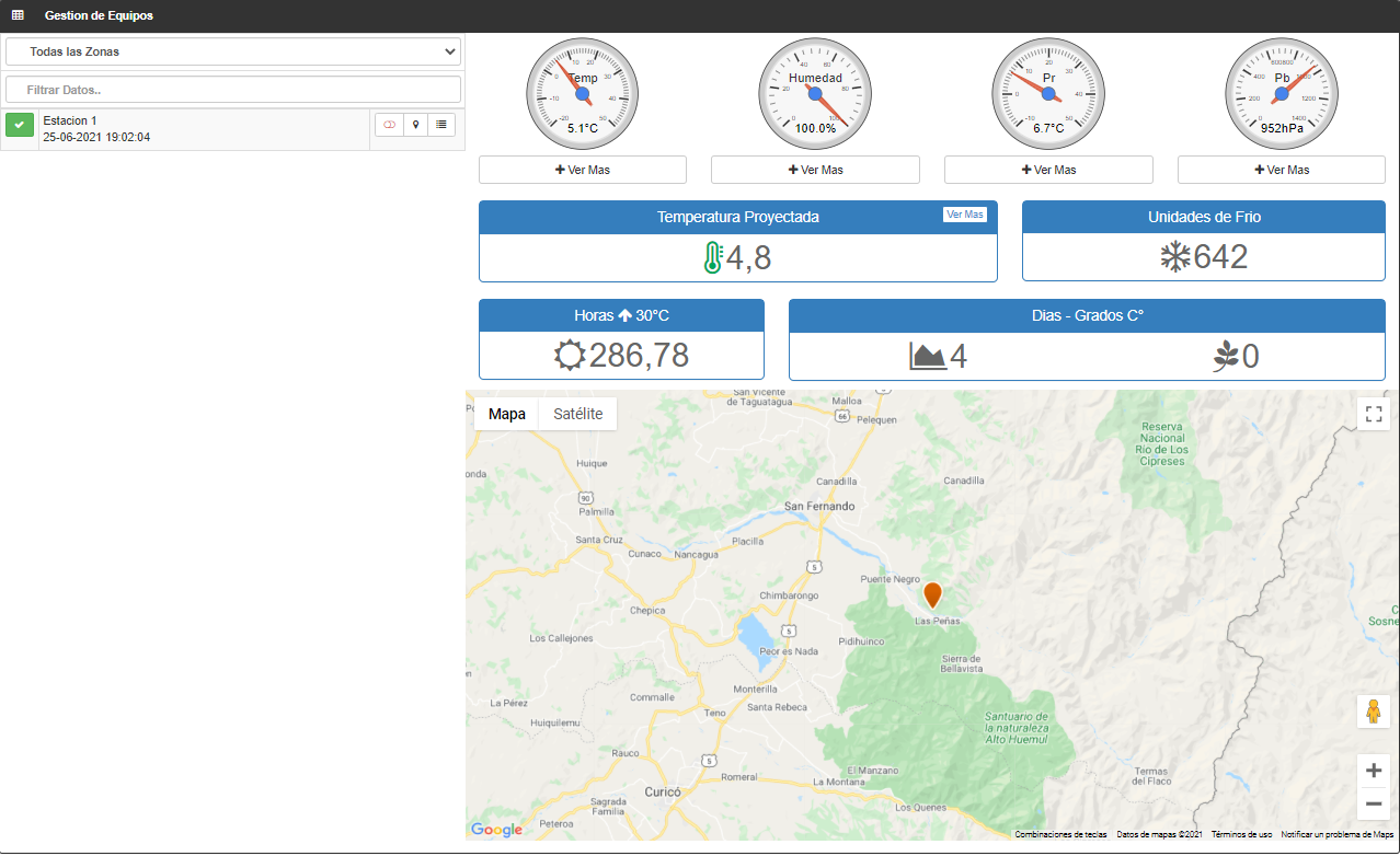 En un panel de control intuitivo, verás la información necesaria de cada estación meteorológica individualmente