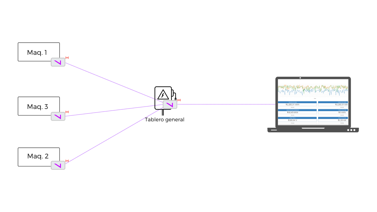 Conectamos a internet el panel eléctrico general de la planta y el de cada maquinaria productiva. Esto, gracias a nuestro propios equipos de telemetría no invasivos que tienen su propia conexión y comunicación a internet. Lo más interesante es que puedes revisar los KPI’s en la plataforma web ¡Y desde cualquier punto del país!