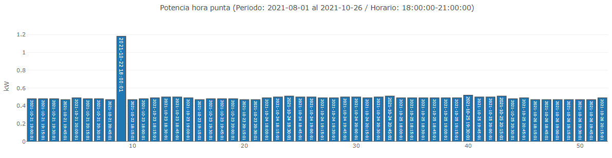 consumo eléctrico del mes actual y mes anterior; Peaks